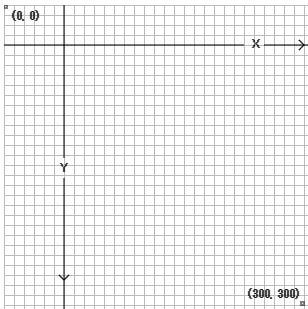 - 座標を表記している「(0, 0)」、「(300, 300)」の文字