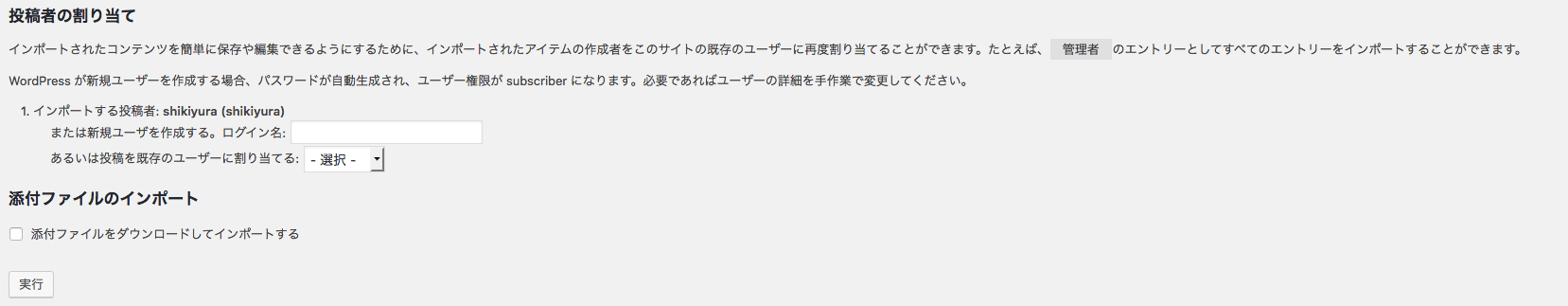 WordPressの「インポーターの実行」をクリックします。
