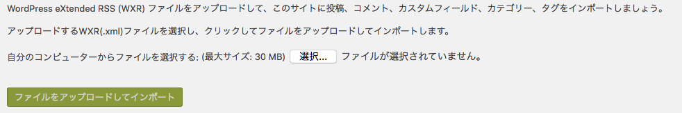 新サイトのWP管理画面から「ツール」=>「インポート」を選択。