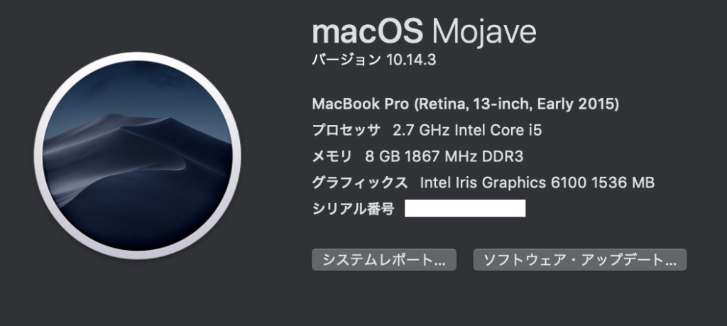 なお、何度か登場していますが、私が使用しているMacのスペックを書いておきます。