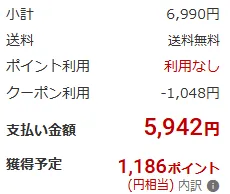 どっちが安いかなぁとカートに入れて購入画面を見てみましたが、ポイント還元分も含めると4,756円でした。
