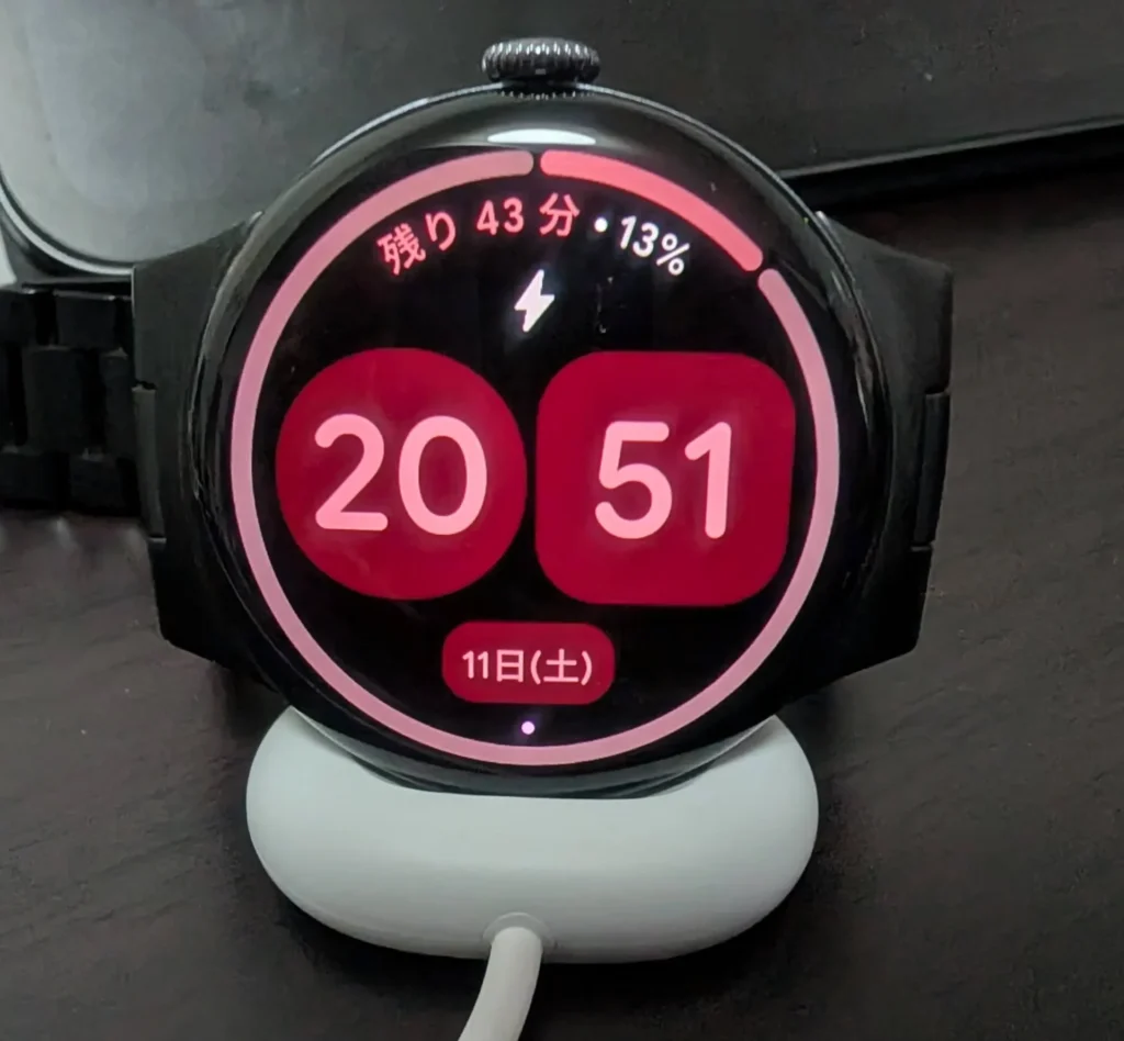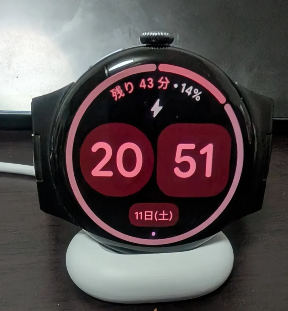 前モデルのPixel Watch 3では、充電しようと思って充電器をくっつけようとしたときに向きが逆でイラっとする場面が何度もありました。