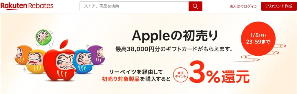 2026年1月、楽天リーベイツにてAppleの初売りが開催されていました。