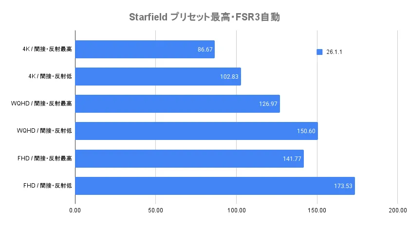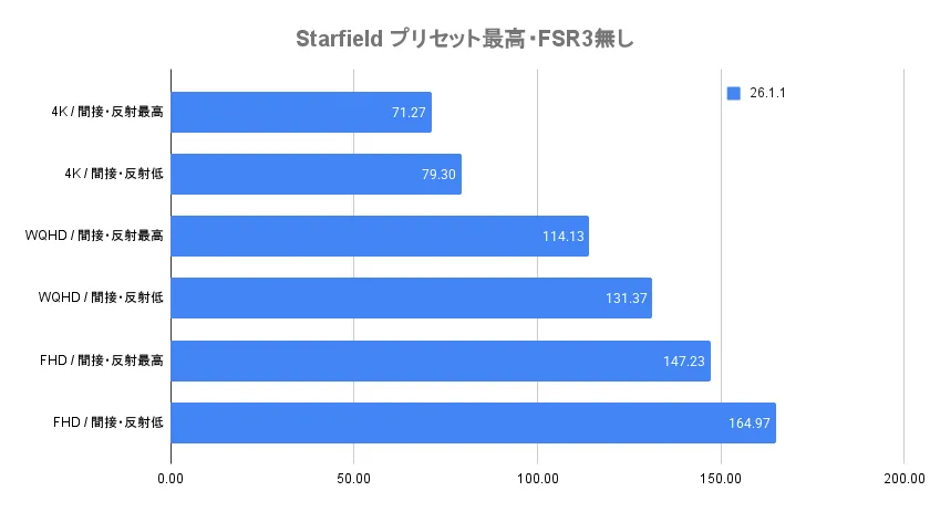 続けて、FSR3有効・フレーム生成を無効の場合の比較したグラフはこちら。