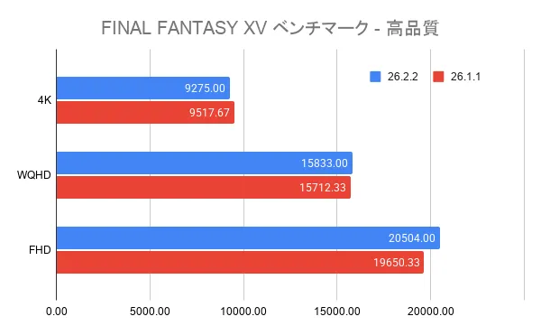 今回は、AMD Software: Adrenalin Edition v26.2.2の性能計測でした。
