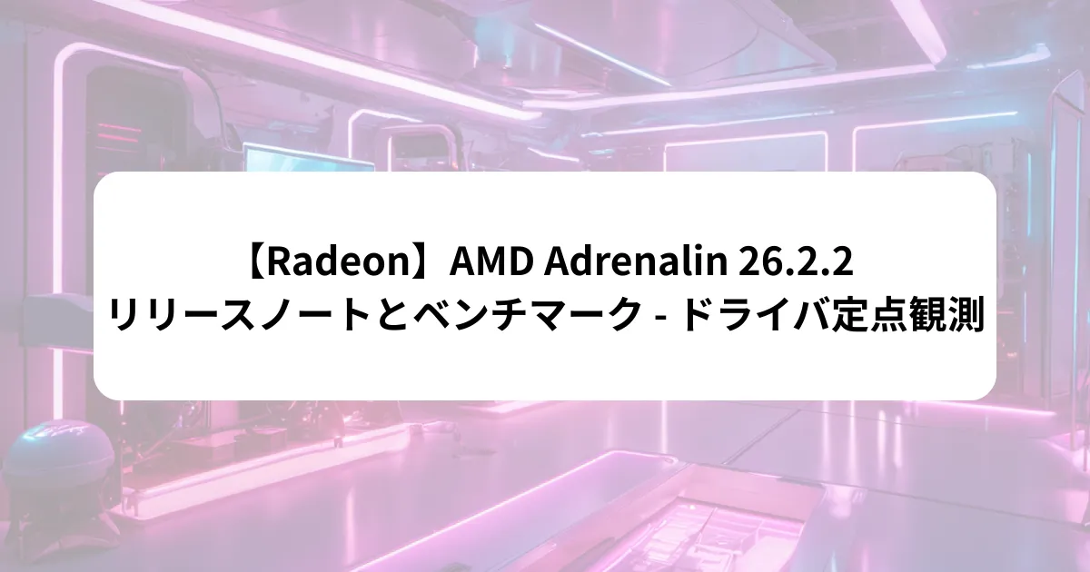 今回は、AMD Software: Adrenalin Edition v26.2.2の更新履歴とベンチマーク結果をまとめます。